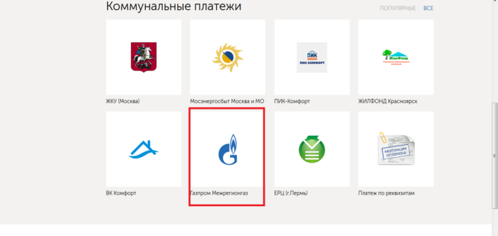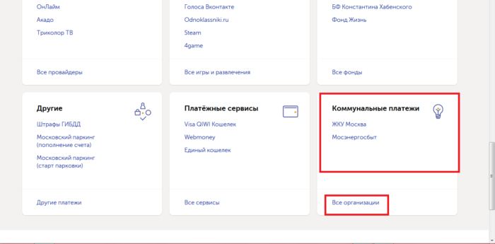 Отыщите раздел “Коммунальные платежи”, а в нем вашего поставщика.